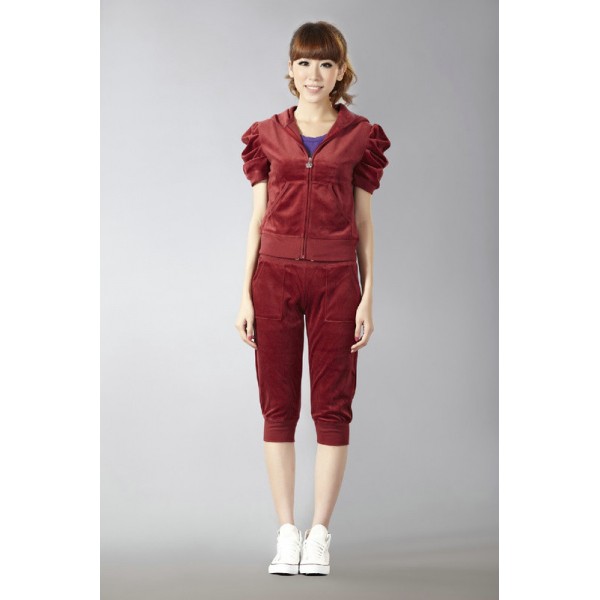 Juicy Couture Short Tracksuits Orignal Velour With Pocket Dark Red